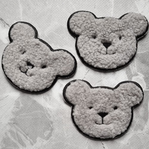 Нашивка для одягу патчі Ведмідь світло-сірий з чорним контуром