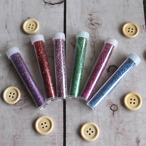 В наборе 6 колбочек с разными цветами глитера.