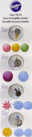 В набор входит 4 насадки, которые используются с кондитерскими мешками и держателями для насадок стандартных размеров и с кондитерским шприцом Wilton.