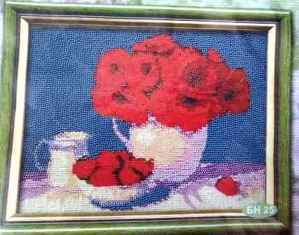 До складу набору входить: біла канва Аіда 14 з розміткою, бісер Preciosa, муліне ПНК ім. Кірова на паперовому органайзері, бісерна голка, голка для вишивки, кольорова лічильна схема, коротка інструкція.