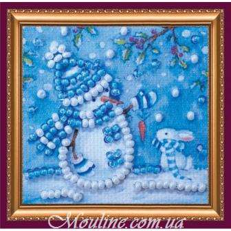 Набор-магнит для вышивания бисером Снеговик и зайка AMM-025