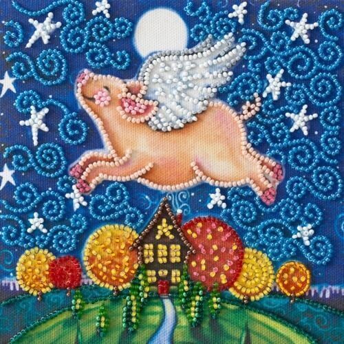 В наборе для вышивки бисером AM-196 Летающая свинка (АМ-196) от украинского производителя Абрис Арт вы найдете символ 2019 года - смешную хрюшу, у которой отросли крылышки. Яркая, красочная, оригинальная картина украсит ваш дом.