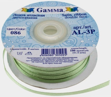 Стрічка атласна 3 мм двостороння, сіро-зелений 086