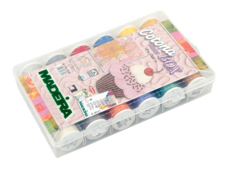 Набор нитей из хлопка MADEIRA COTONA №50 для отстрочки, вышивки и шитья. В наборе 18 катушек по 1000 метров каждая. Сotona №50 - идеальные нитки для квилтинга из высококачесвенного египетского хлопка с лоскутными свойствами. Возможно использование этих ниток на всех машинках. Превосходные результаты достигаются благодаря высокой прочности ниток, что делает их пригодными для всех вышивальных и швейных работ. Нитки Cotona №50 соответствуют высоким стандартам качества и созданы с собл юдением строгих экологичских норм.
