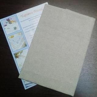 Готовая льняная скатерть под вышивку (вставки под вышивку расположены по периметру, как показано на рисунке). Зашивается область по периметру и полосы по всей длине скатерти.