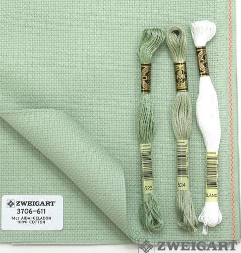 Артикул производителя: 3706/611Размер: ширина 110 смЦвет: Celadon (серо-зеленый 611)Каунт: 14Количество стежков на 1 см: 5,4Состав ткани: 100% хлопокЭквивалент в DMC: 523 - 524