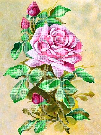Ткань с нанесенным рисунком Роза для вышивания бисером Ангелика