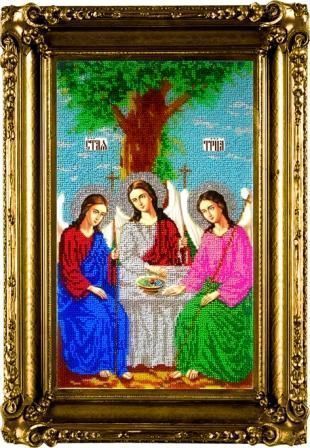Знаменитая икона "Троица" - одна из самых прославленных и почитаемых русских икон. "Троица" обозначает жертвенный подвиг Христа. На иконе изображены три ангела, сидящих за трапезой. Чаша в центре иконы - прообраз "гроба господня", а ангел, благословляющий ее, олицетворяет Сына. Склонив головы к Отцу, ангелы, олицетворяющие Сына и Духа, как бы передают единство Троицы, их общее участие в замысле спасения человечества. Фигуры ангелов образуют замкнутый круг, что символизирует единство Святой Троицы. Икона полна неподвижного созерцания, она передает взгляды, устремленные в вечность.
