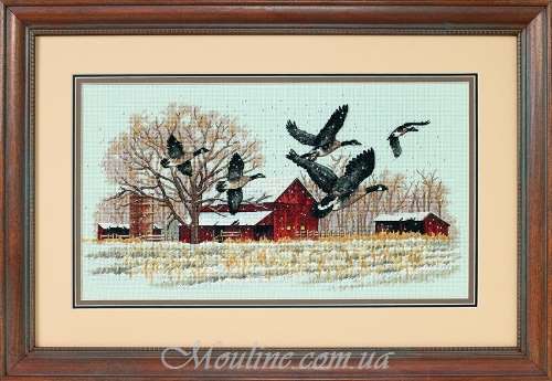 В набор входит: инструкция, цветная символьная схема, канва Aida 16 серо-голубая, хлопковое мулине Dimensions