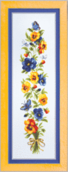 В набор входит цветная схема, инструкция, ткань Zweigart Aida 14, мулине Madeira 16 цветов, бисер (Чехия) 15 цветов, двухсторонняя атласная лента и иглы. Работа прошивается в одну и две нити швом "крест", "полукрест".