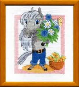 Набір містить: інструкцію, кольорову символьну схему, тканину Aida 14, муліне Anchor - 21 колір та голку.