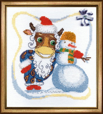 В набор входит: инструкция, цветная символьная схема, ткань Aida 14 хлопок, мулине Anchor - 18 цветов, бисер Preiosa Ornela (Чехия) - 5 цветов, атласная лента и иглы.