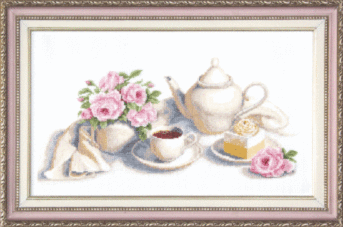 В набор входит: цветная схема-инструкция, канва Aida 14 Zweigart белого цвета, мулине Madeira 22 цвета, бисер(Чехия)8 цветов и иглы.