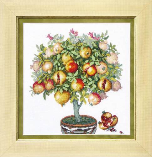 Роскошное деревце, густо усыпанное плодами граната, кажется, источает приятный аромат свежести – несмотря на незамысловатый сюжет, этой картиной хочется любоваться!