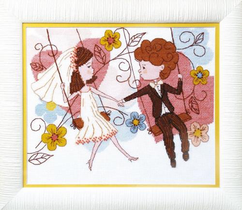 Юные жених и невеста держатся за руки, резвясь на качелях, вокруг цветение заключает их в свои объятия, а впереди целая жизнь, разделенная пополам…