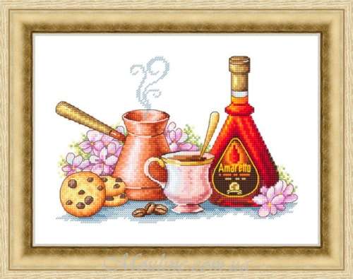 В состав набора входит: цветная символьная схема; канва Аида 14; хлопковое мулине, разобранное на органайзере по цветам, с запасом 50%; игла.