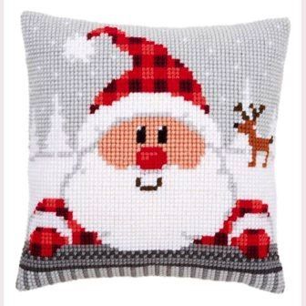 Набор для вышивания Vervaco Подушка PN-0148061 Санта в клетчатой шапке