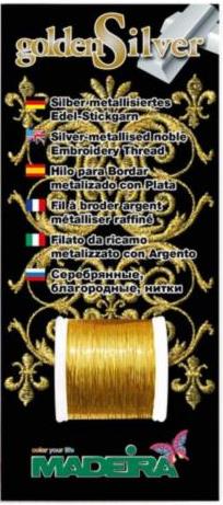Новинка в мире металлических нитей - GoldenSilver! Нить очень высокого сверкания, с отличным оптическим эффектом. Идеальная для золотого шитья и любой уникальной и дорогой вышивки. Подходит для декоративного шитья, ручной и машинной вышивки.