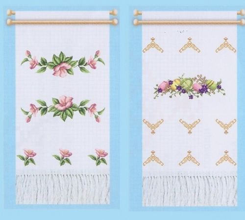 Состав: 70% хлопок, 30% п/э. Готовый рушник с вставками канвы, обработанный по краям, с бахромой и цветной схемой.