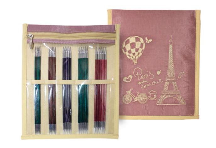 Цветные деревянные спицы из березы с блестящими металлическими наконечниками от всемирно известного бренда KnitPro. Редкая комбинация прочности и утонченности. Каждому размеру спиц соответствует свой цвет для легкой идентификации номера спицы. Блестящий и гладкий наконечник. Прекрасно зауженные наконечники идеально подходят для всех типов пряжи. Легкие, прочные спицы Royale KnitPro обладают долгим сроком службы. Полированная деревянная поверхность работает легко с каждым типом пряжи, не замедляя вяжущий ритм. Просты в использовании и идеально подходят для новичков. Спицы Royale KnitPro обеспечат радостные часы вязания без всякой усталости. В набор входит 5 пар спиц: 2.00 мм - аквамарин, 2.50 мм - бордовый, 3.00 мм - темно-желтый, 3.50 мм - аквамарин, 4.00 мм - фуксия. Набор упакован в тканевой чехол с вышитым рисунком в стиле "Париж".