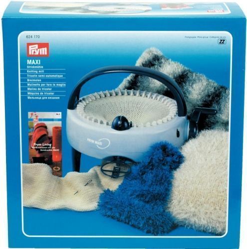 это простая в использовании вязальная машинка. Она оснащена переключателем режима, рукояткой, нитеводителем, устройством для натяжения нити, ножками с противоскользящими вставками, а также ручкой-держателем и пластиковой иглой. Мельница используется для кругового вязания на 44 иглах или вязания рядами на 40 иглах в прямом и обратном направлении. Великолепная возможность быстро вязать шарфы, шапки, носки и многое другое с минимальной затратой времени. На мельнице для вязания Prym "Макси" можно вязать практически любой пряжей, предназначенной для ручного вязания.